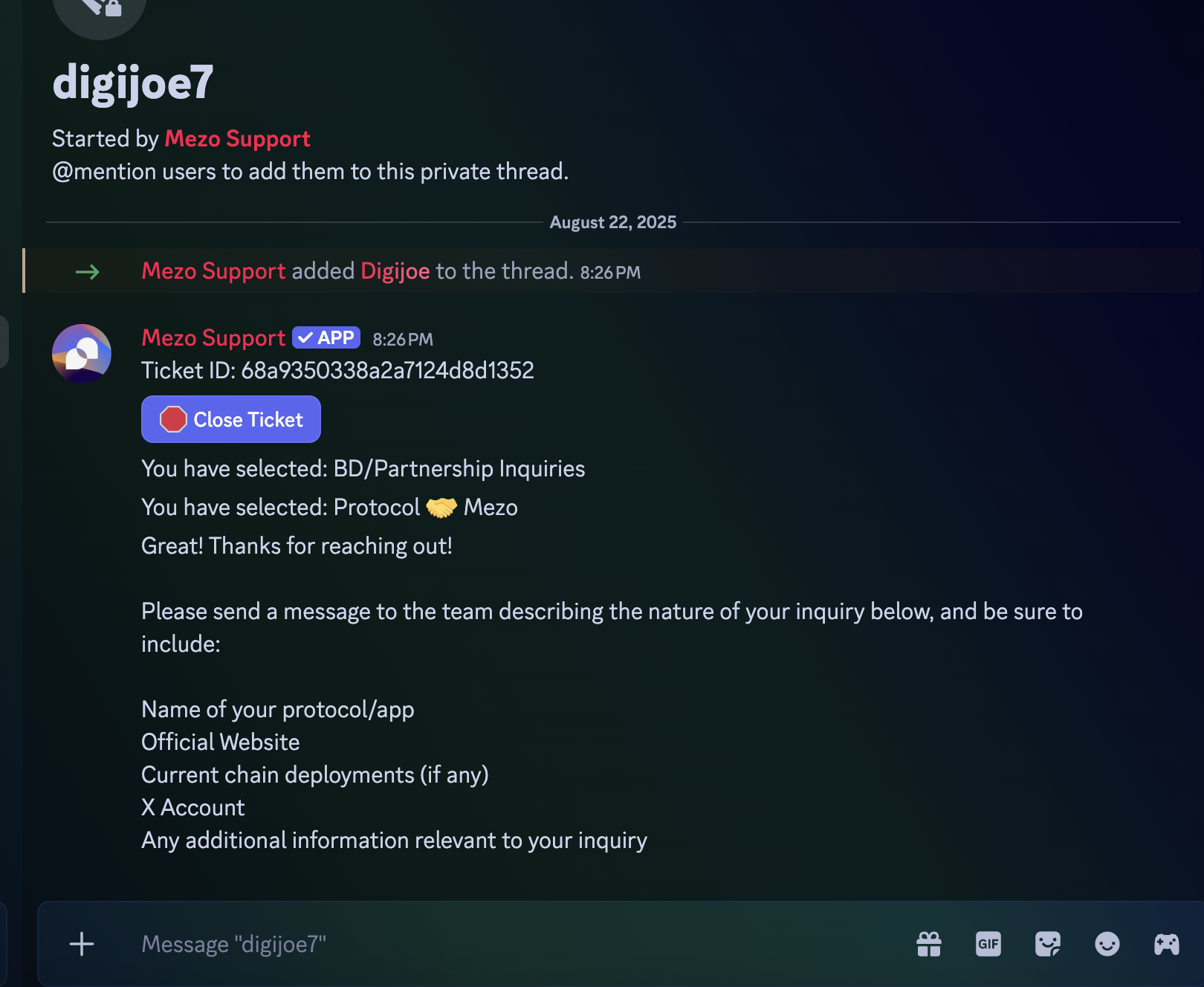Section titled “Step 1”Tag a moderator, digijoe, or lowpolyduck in general chat asking for the “open-ticket” role to unlock the support ticket channel.